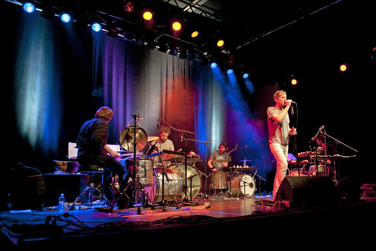 Für die Konzertpremiere dieser «Drum & Vocal Renditions» hat Julian Sartorius nun nebst Merz drei weitere Schweizer Schlagzeuger seiner Generation auf die Bühne geholt. Und sein Zusammenspiel mit Lionel Friedli, Arno Troxler und Peter Conradin Zumthor ist eine Sensation. Nicht nur, weil hier vier hervorragende Perkussionisten eine Quartettmusik spielen wie ein einzelner, achthändiger Musiker (und dies an diesem Abend im Moods zudem in einer perfekten Soundqualität, die jedem Klangdetail seinen Raum gibt). Sondern, viel mehr noch, weil zu hören ist, wie frei die vier im Jazz geschulten Perkussionisten über die Grooves der Musikgeschichte verfügen, wie selbstverständlich ihnen die Beats aus Hip-Hop und Dance aus der Hand gehen, aber auch die harten Attacken des Rock oder die eleganten Trommelkreise des Afrobeat. (Christoph Fellmann).